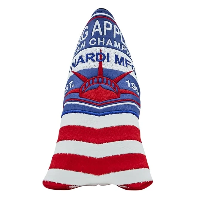 Major! You’ll have to be quicker than a New York minute to check-out with SRB’s newly designed 2020 American Championship blade headcover! Proudly made in the USA, our 2020 American Championship Headcover features the Big Apple Bettinardi MFG Co. badge stitched down the center with Lady Liberty’s crown perfectly centered in the middle of the cover. Crafted from the finest blue and white leather, and intricately stitched in USA red, white, and blue, this headcover features the Hex B Big Apple and the host city, Mamaroneck, NY with the American Flag on the other side to complete this American dream cover. Let freedom ring! Limited quantities made for this exclusive Hive release. Good luck!