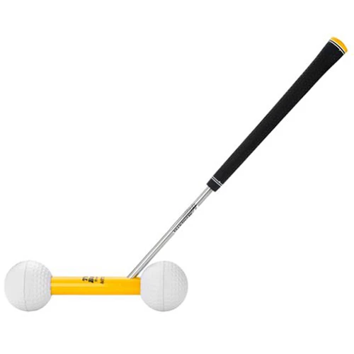 The Two Ball Trainer’s over-sized yellow weighted club head, simulates the club face on a golf club, and as you make practice swings with it, the two balls naturally rotate the face properly back and through, ingraining muscle memory for the correct swing, so you can dramatically improve your ball striking and short game too! The two over-sized golf balls act as great visuals for seeing the proper face rotation during the swing.