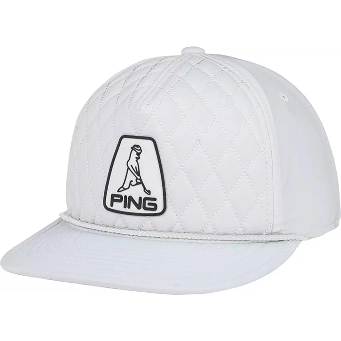 The limited-edition PING Heritage snapback caps feature a diamond stitch pattern with an embroidered Mr PING logo.
