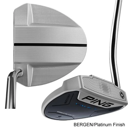 OSLOClean, smaller mallet putter.Geometric features help capture the ball at address.• Precision milled 6061 T-6 aluminum body.• Cast 17-4 stainless steel sole plate.• Straight or Slight arc stroke type• 365 grams• Double-bend shaft• Available Platinum or Slate finishBERGENTop sightline extends to back of putter. Precision milling lines aid in alignment.• Precision milled 6061 T-6 aluminum body.• Cast 17-4 stainless steel soleplate.• Straight or Slight arc stroke type• 365 grams• Double-bend shaft• Available Platinum or Slate finishPING PISTOL (PP62) GRIPPistol shape fits naturally into palm and fingertips for more consistent grip pressure. Made from a soft, tacky polymer to ensure a comfortable feel.UV coating resists fading.