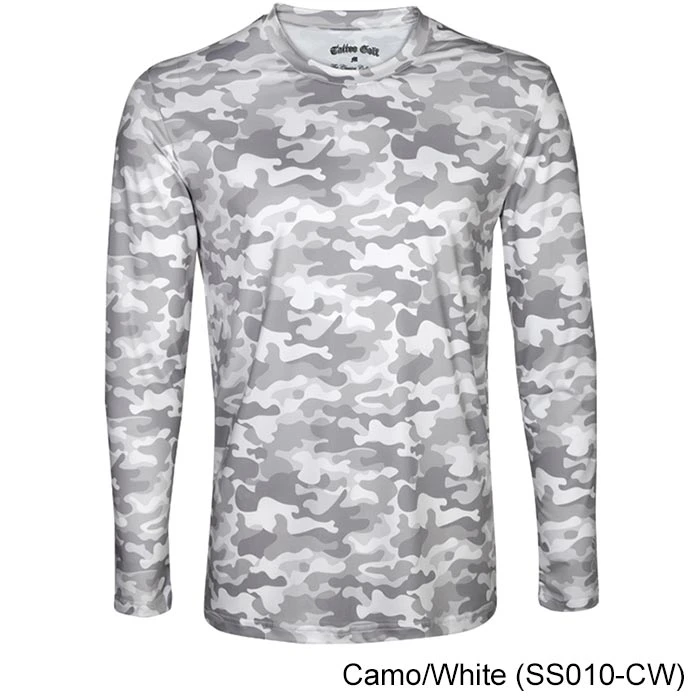 Same great performance – new Camo design and color!! Tattoo Golf High Performance Under-Layer Long Sleeve Shirt, These light weight long sleeve sport shirts feature an all-over camo print with sublimation Tattoo Golf skull design at the bottom of the left sleeve as well as on the back, below the collar. Light weight, moisture wicking, high performance sport shirt 180gms 90% polyester 10% spandex knitted fabric